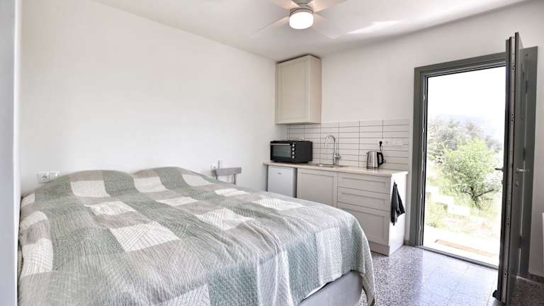 Die Apartments im Little House in the Olive Grove sind klimatisiert und verfügen über einen Balkon, der einen herrlichen Ausblick bietet. Jedes Apartment verfügt über eine gut ausgestattete Küchenzeile mit Kühlschrank, Minibar und Kochfeld. Ein Haartrockner ist ebenfalls vorhanden.