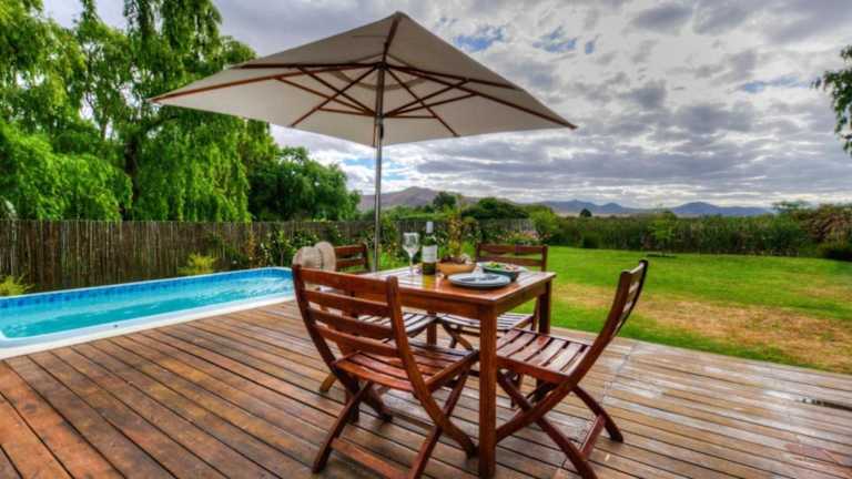 Das Little Oak Cottage ist ein charmantes Ferienhaus mit Bergblick, das eine ideale Unterkunft für alle bietet, die dem hektischen Alltag entfliehen und die Natur genießen möchten. Mit einem eigenen Pool, einem Garten und Grillmöglichkeiten können Sie sich hier entspannen und die schöne Umgebung erkunden. Das Ferienhaus verfügt über ein gemütliches Schlafzimmer, eine gut ausgestattete Küche und ein komfortables Badezimmer. WLAN und kostenfreie Privatparkplätze sind ebenfalls vorhanden. Nutzen Sie den Außenpool und die Terrasse, um sich zu erfrischen und die Sonne zu genießen. In der Umgebung gibt es zahlreiche Möglichkeiten zum Wandern und Radfahren. Der internationale Flughafen Kapstadt ist nur 125 km entfernt.