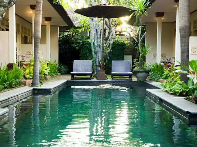 Das Little Pond Homestay in Sanur bietet seinen Gästen eine gemütliche Unterkunft mit einem Pool, einem schönen Garten und einer Terrasse. Die Zimmer sind mit kostenfreiem WLAN ausgestattet und verfügen über ein eigenes Badezimmer mit Dusche und kostenlosen Pflegeprodukten. Die Unterkunft bietet auch einen Fahrradverleih und eine Autovermietung für diejenigen, die die Umgebung erkunden möchten. Beliebte Strände wie Segara, Karang und Sindhu befinden sich in der Nähe. Der internationale Flughafen Denpasar ist nur 16 km entfernt und die Unterkunft bietet auch einen kostenpflichtigen Flughafentransfer.