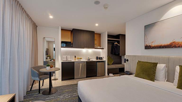 Die Zimmer sind mit Klimaanlage, Kühlschrank, Mikrowelle, Wasserkocher, Dusche, kostenlosen Pflegeprodukten und Kleiderschrank ausgestattet. Einige Unterkünfte verfügen über eine Küche mit Geschirrspüler und Ofen. Bettwäsche und Handtücher sind in allen Wohneinheiten vorhanden.
