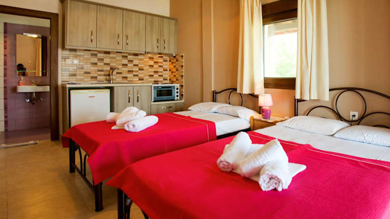 Das Livari Studios befindet sich in einer grünen Umgebung direkt am Strand. Geschäfte sind nur 600 m entfernt und Restaurants erreichen Sie nach 1,5 km. Die Lage bietet Ihnen die Möglichkeit, die Schönheit der Ägäis zu genießen und gleichzeitig die Annehmlichkeiten der nahe gelegenen Geschäfte und Restaurants zu nutzen. Das malerische Dorf Agios Nikolaos ist nur 14 km entfernt und der Flughafen Thessaloniki liegt in einer Entfernung von 76 km.