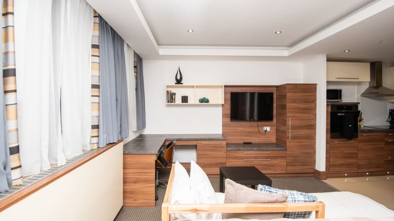 Die Livin' Serviced Apartments bieten geräumige Zimmer mit einem separaten Sitzbereich. Jedes Zimmer verfügt über eine voll ausgestattete Küche mit Geschirrspüler, Backofen, Mikrowelle, Toaster, Kühlschrank und Wasserkocher. Ein eigenes Badezimmer mit kostenfreien Pflegeprodukten und einem Haartrockner ist ebenfalls vorhanden. WLAN nutzen Sie in der gesamten Unterkunft kostenfrei.