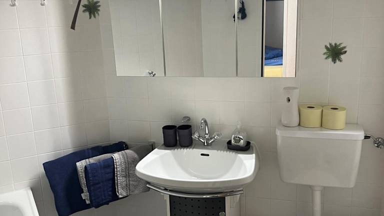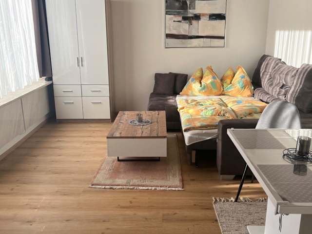 Die Ferienwohnung bietet einen Balkon, ein Schlafzimmer, ein Wohnzimmer und eine gut ausgestattete Küchenzeile für die Selbstversorgung.