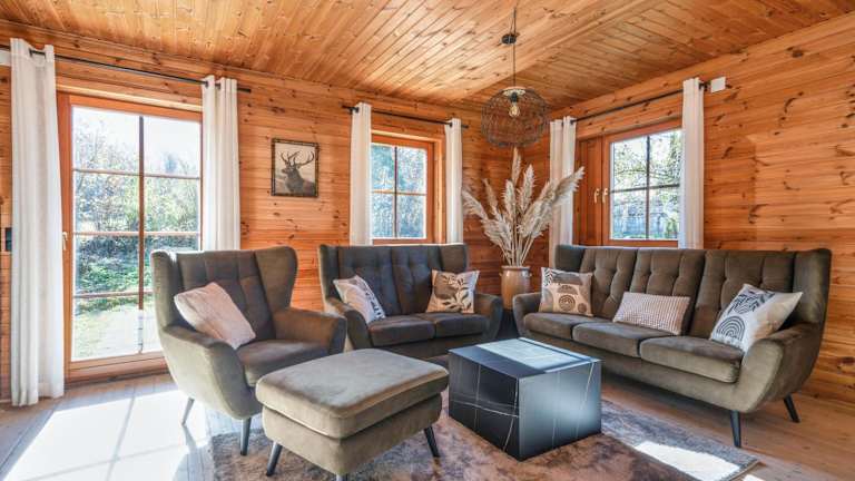Die Living Lodge bietet geräumige Übernachtungsmöglichkeiten mit 4 Schlafzimmern und einem Wohnzimmer. Zur Ausstattung gehören ein Satelliten-Flachbild-TV, eine gut ausgestattete Küche sowie 2 Badezimmer mit Dusche und Badewanne. Handtücher und Bettwäsche werden bereitgestellt, und die Unterkunft verfügt über einen Balkon und eine Kaffeemaschine.