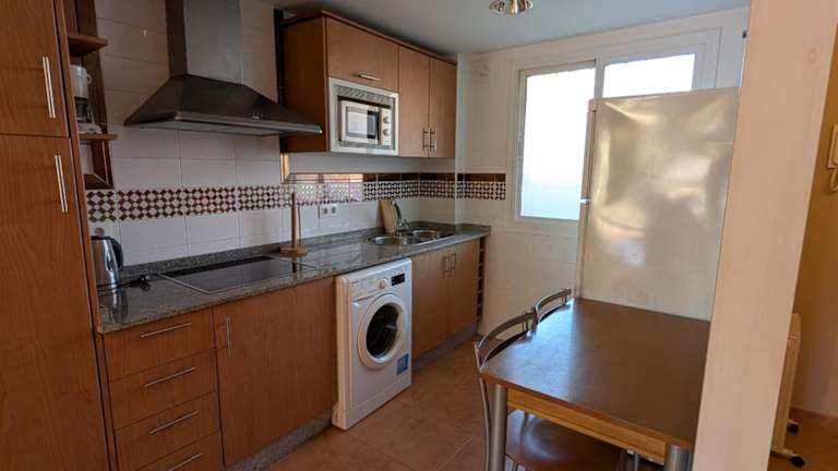 Die Küchenzeile ist mit einem Kühlschrank, einer Mikrowelle, einem Toaster, einer Kaffeemaschine und einem Wasserkocher ausgestattet, um die Gäste bei der Selbstversorgung zu unterstützen.