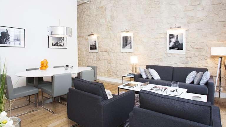 Das LivinParis - Luxury 2 Bedrooms Le Marais I ist ein charmantes und geräumiges Apartment im Herzen des angesagten Pariser Stadtteils Marais. Mit seinen hohen Decken, Holzbalken und Steinwänden versprüht das 80 m² große Apartment einen einzigartigen Charme. Kostenloses WLAN und ein Flachbild-Sat-TV sorgen für Unterhaltung und Komfort. Die gut ausgestattete Küche mit Geschirrspüler und Mikrowelle ermöglicht es Ihnen, Ihre Mahlzeiten ganz nach Ihren Wünschen zuzubereiten. Die Unterkunft befindet sich in der Nähe von Restaurants, Bars und Lebensmittelgeschäften, so dass Sie alle Annehmlichkeiten in unmittelbarer Nähe haben. Die zentrale Lage des Apartments ermöglicht es Ihnen, viele Sehenswürdigkeiten wie die Place de la République, das Centre Pompidou und die Kathedrale Notre Dame zu Fuß oder mit der U-Bahn zu erreichen.