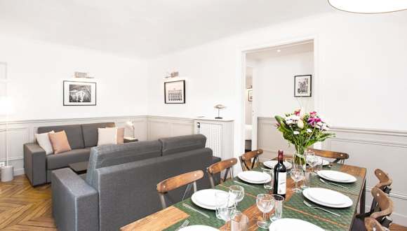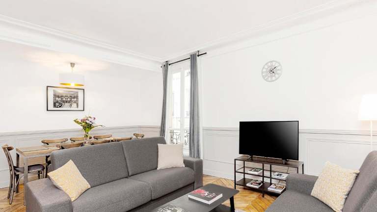 LivinParis - Luxury 4 Bedrooms Opera Lafayette II bietet Unterkünfte mit kostenfreiem WLAN und einem Essbereich. Die Zimmer sind modern gestaltet und umfassen einen Sitzbereich mit einem Flachbild-TV sowie eine voll ausgestattete Küche.