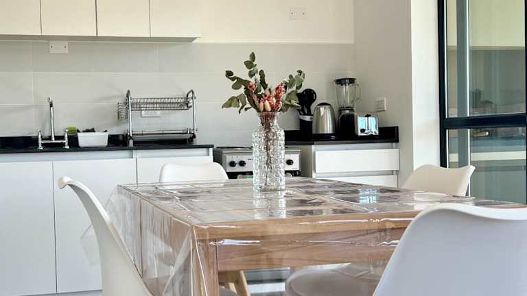Die Ferienwohnung umfasst drei Schlafzimmer, ein Wohnzimmer sowie zwei Badezimmer mit einem Bidet. Zur Ausstattung gehören ein Flachbild-TV und eine gut ausgestattete Küche mit Kühlschrank und Ofen. Eine Terrasse mit Blick auf die Stadt ist ebenfalls vorhanden.