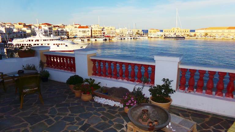 Die Locadiera Pansion in Ermoupoli auf der Insel Syros bietet Ihnen einen gemütlichen Aufenthalt im Herzen der Stadt. Genießen Sie den Blick auf die Ägäis von der Sonnenterrasse aus und nutzen Sie das kostenlose WLAN in allen Bereichen. Die geschmackvoll eingerichteten Zimmer sind klimatisiert und verfügen über einen Flachbild-TV. Einige Zimmer bieten zudem einen eigenen Sitzbereich zum Entspannen. Starten Sie den Tag mit einem reichhaltigen hausgemachten Frühstück auf der Terrasse mit Meerblick. Die Unterkunft befindet sich in der Nähe von Sehenswürdigkeiten wie der St.-Nikolaus-Kirche und dem Industriemuseum von Ermoupoli. In der Umgebung finden Sie auch eine Vielzahl von Restaurants, Tavernen und Bars.
