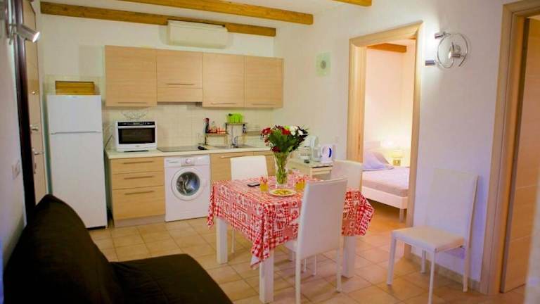 Das Ferienhaus ist klimatisiert und bietet zwei Schlafzimmer, ein Wohnzimmer sowie eine voll ausgestattete Küche, die mit einem Kühlschrank und einer Kaffeemaschine ausgestattet ist. Ein Badezimmer mit Dusche und Haartrockner ist ebenfalls vorhanden. Handtücher und Bettwäsche werden zur Verfügung gestellt.