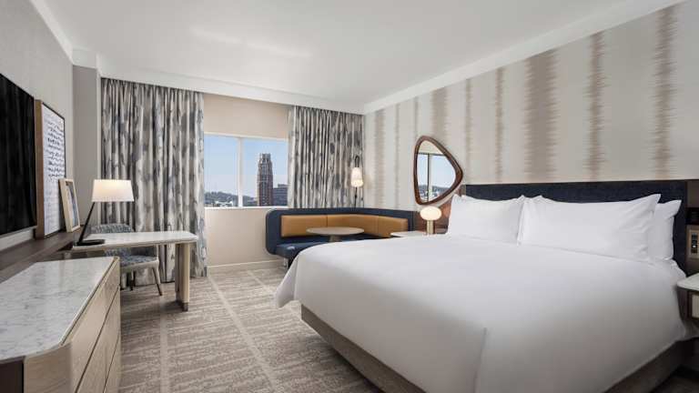 Die Zimmer sind klimatisiert und verfügen über zeitgemäße Annehmlichkeiten wie Pillow-Top-Matratzen, ein Kingsizebett sowie ein Sofabett. Für zusätzlichen Komfort sind ein Safe, eine Minibar, ein Kühlschrank, eine Mikrowelle und eine Tee-/Kaffeemaschine vorhanden. Die Badezimmer sind mit einer Dusche und Badewanne ausgestattet und bieten Haartrockner sowie Bademäntel. Außerdem sind rollstuhlgerechte Zimmer und Nichtraucherzimmer verfügbar.