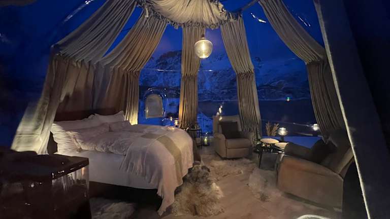 Lofoten glampingdome ist eine besondere Zelt-Lodge, die modernen Komfort mit einem naturnahen Erlebnis kombiniert. Die Unterkunft ist nur für Erwachsene und bietet eine ruhige Atmosphäre.