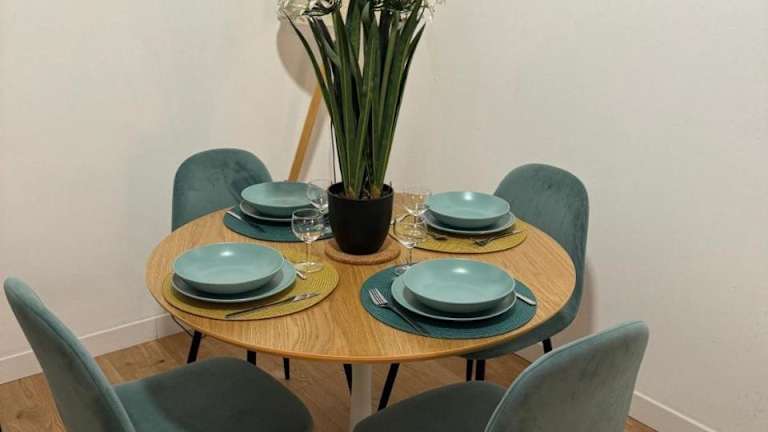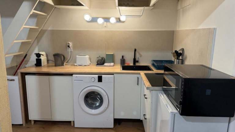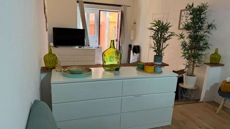 Die Wohnung umfasst ein Schlafzimmer, ein Wohnzimmer sowie eine voll ausgestattete Küche mit Kühlschrank und Kaffeemaschine. Ein Badezimmer mit Dusche und Haartrockner ist ebenfalls vorhanden. Handtücher und Bettwäsche stehen zur Verfügung. Die Unterkunft ist klimatisiert und bietet Nichtraucherzimmer.