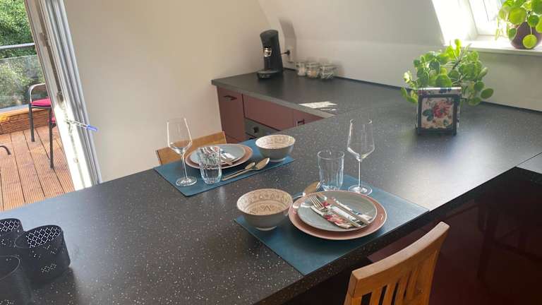 Loft in der alten Spinnerei bietet kostenloses WLAN sowie eine Terrasse. Die Wohnung hat Zugang zu einem Balkon mit Gartenblick und besteht aus einem Schlafzimmer sowie einer voll ausgestatteten Küche. Der Flachbild-TV sorgt für Unterhaltung.