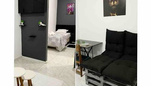Loft Mobiliado com Cama de Casal e Solteiro bietet eine moderne Ferienwohnung mit einem Schlafzimmer und kostenloser WLAN-Verbindung. Die Anlage ist Nichtraucherzonen, und es ist keine Feier von Junggesellenabschieden oder ähnlichen Veranstaltungen gestattet. Haustiere sind erlaubt und Gäste haben Zugang zu einem kostenlosen Privatparkplatz.