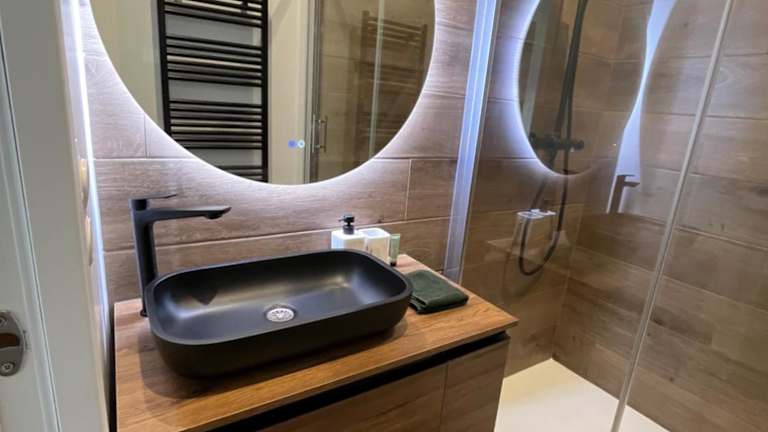 Die Ferienwohnung umfasst 1 Schlafzimmer, eine voll ausgestattete Küche mit Kühlschrank und Geschirrspüler, einen Flachbild-TV sowie einen Sitzbereich. Das Badezimmer ist mit einer Dusche ausgestattet. Handtücher und Bettwäsche werden bereitgestellt, und die Unterkunft reinigt diese gemäß den Richtlinien der örtlichen Behörden.