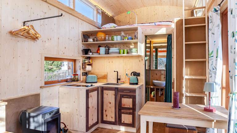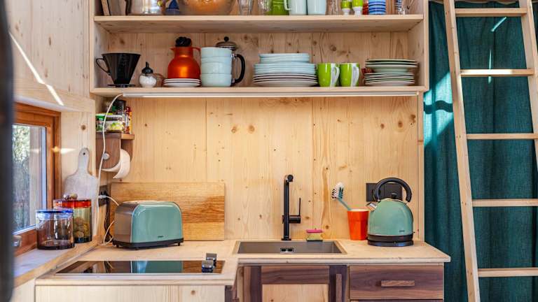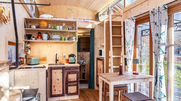 Das Chalet ist mit einem Schlafzimmer, einer voll ausgestatteten Küche, einem Kühlschrank und einem Ofen ausgestattet. Ein Badezimmer mit Dusche und kostenlosen Pflegeprodukten ist ebenfalls vorhanden. Handtücher und Bettwäsche werden bereitgestellt.