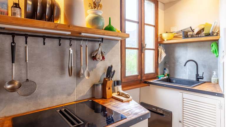Zur Ausstattung der Ferienwohnung gehört eine voll ausgestattete Küche, die unter anderem einen Kühlschrank und eine Kaffeemaschine umfasst. Weitere Informationen zu Verpflegungsmöglichkeiten sind nicht vorhanden.
