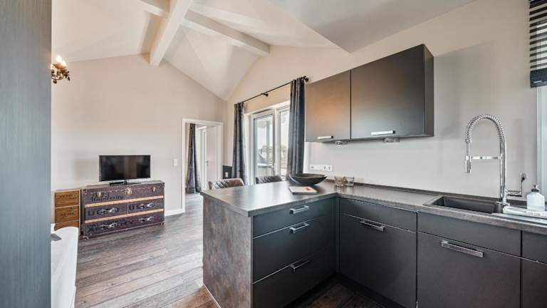 Die Ferienwohnung verfügt über ein Schlafzimmer und ist mit einem TV ausgestattet. Die voll ausgestattete Küche bietet Annehmlichkeiten wie einen Kühlschrank, einen Geschirrspüler, eine Waschmaschine, einen Ofen und eine Herdplatte.