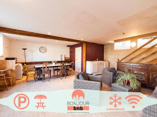 Logements calmes avec piscine, jardin et parking bietet einen saisonalen Außenpool, einen Garten und eine Terrasse. Sie ist eine privat geführte Unterkunft, in der eine Zahlung per Überweisung vor der Anreise erforderlich ist. Es ist darauf zu achten, dass Junggesellen- oder ähnliche Feiern nicht erlaubt sind und Gäste unter 18 Jahren nur in Begleitung eines Elternteils einchecken können.
