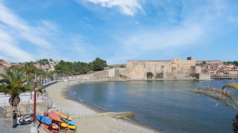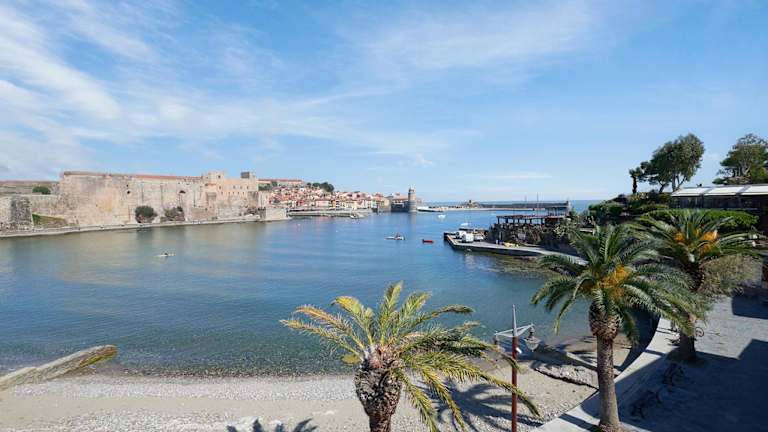 Das Hotel befindet sich direkt am Strand Plage du Boutiquet, mit Blick auf die Bucht von Collioure. Die befestigte Stadt Collioure sowie das Schloss und der Kirchturm sind in der Umgebung zu sehen. Argelès-sur-Mer liegt 7 km entfernt, die spanische Grenze 25 km und Perpignan 30 km. Öffentliche Parkplätze sind gegen Gebühr gegenüber der Unterkunft verfügbar.