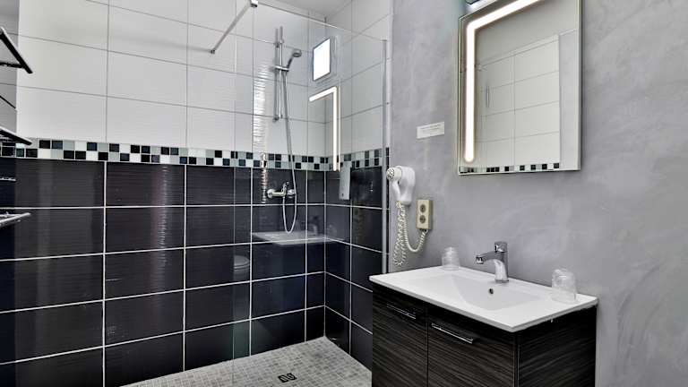 Die Zimmer sind mit einem Doppelbett oder Queensize-Bett ausgestattet und verfügen über ein eigenes Bad mit Dusche und Badewanne sowie einen Haartrockner. Zu den Annehmlichkeiten gehören ein Safe, ein TV-Gerät, Heizung und kostenfreies WLAN. Es sind auch rollstuhlgerechte Zimmer sowie Familien- und Nichtraucherzimmer verfügbar.