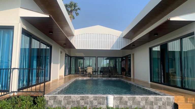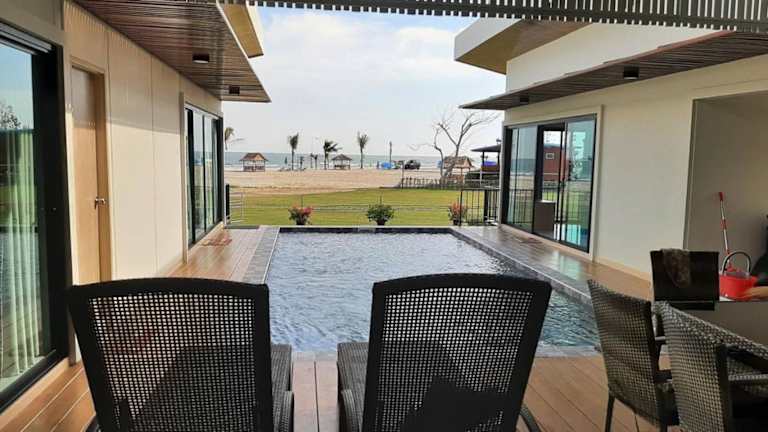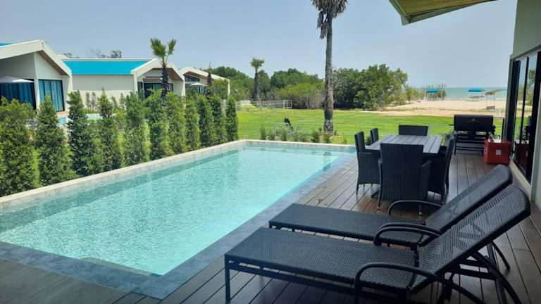 In der Lom Lay Beach Front Pool Villa Chaam, Huahin können Sie sich im Pool erfrischen und die Sonne auf der Terrasse genießen. Die Umgebung bietet auch viele Möglichkeiten für Aktivitäten im Freien, wie Spaziergänge am Strand oder Ausflüge in die nahegelegenen Sehenswürdigkeiten. Entdecken Sie die Schönheit der Umgebung und erleben Sie einen unvergesslichen Urlaub.