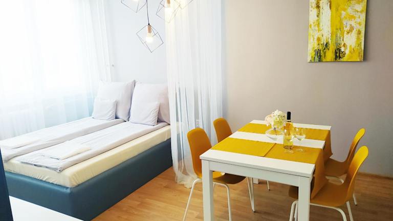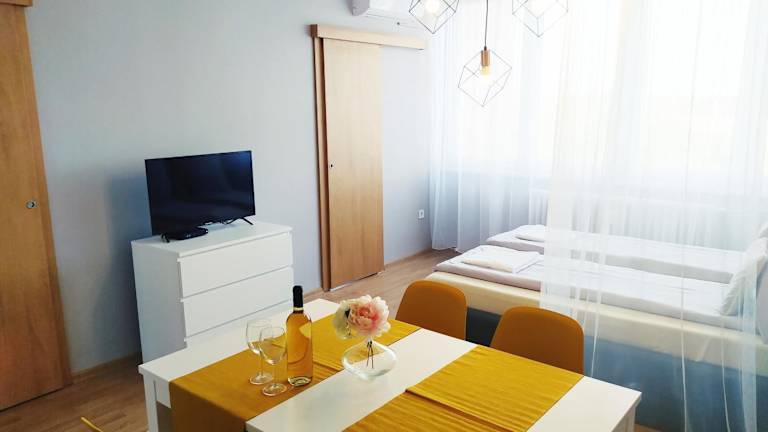Das Lora Apartman in Nyíregyháza ist die ideale Unterkunft für einen entspannten Urlaub in der Nähe der mediterranen Erlebnisbäder Aquaticum. Mit kostenfreiem WLAN, Klimaanlage und einer Terrasse bietet das Apartment allen Komfort, den Sie benötigen. Genießen Sie den Balkon und die voll ausgestattete Küche. Handtücher und Bettwäsche sind vorhanden, um Ihnen einen angenehmen Aufenthalt zu ermöglichen. Der internationale Flughafen Debrecen ist nur 56 km entfernt.