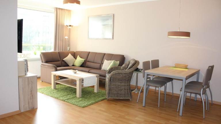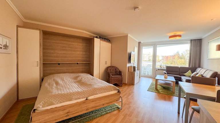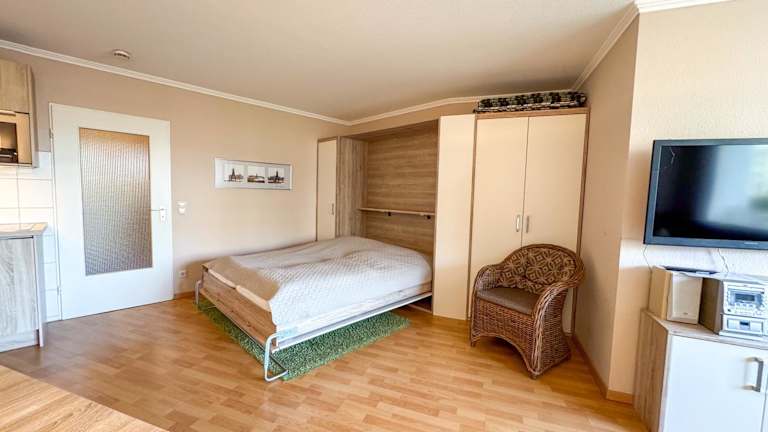 Die Ferienwohnung verfügt über ein Schlafzimmer sowie ein Wohnzimmer, das mit einem Kabel-TV ausgestattet ist. Eine voll ausgestattete Küche mit Kühlschrank und Geschirrspüler ist ebenfalls vorhanden. Das Badezimmer ist mit einer Dusche ausgestattet, und die Wohnung bietet Zugang zu einem Balkon. Kostenloses WLAN ist in der gesamten Unterkunft verfügbar.