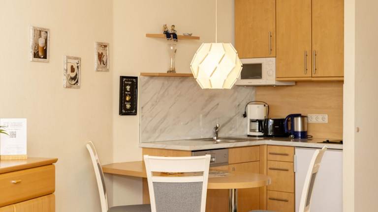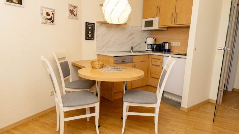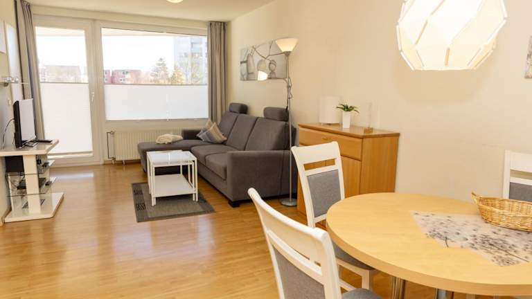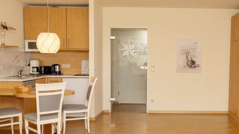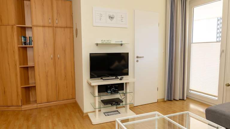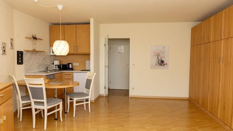 Die Ferienwohnung besteht aus einem Schlafzimmer und einem Wohnzimmer, das mit einem Kabel-TV ausgestattet ist. Eine voll ausgestattete Küche mit Kühlschrank und Geschirrspüler sowie ein Badezimmer mit Dusche sind ebenfalls vorhanden. Es handelt sich um eine Nichtraucherunterkunft, in der in allen öffentlichen und privaten Bereichen das Rauchen nicht gestattet ist.