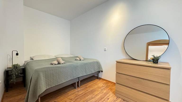 Die Ferienwohnung verfügt über 2 Schlafzimmer, eine Küche mit Kühlschrank und Herdplatte, sowie ein Badezimmer mit Dusche und Haartrockner. Handtücher und Bettwäsche werden bereitgestellt. Es gibt Nichtraucherzimmer und Familienzimmer.