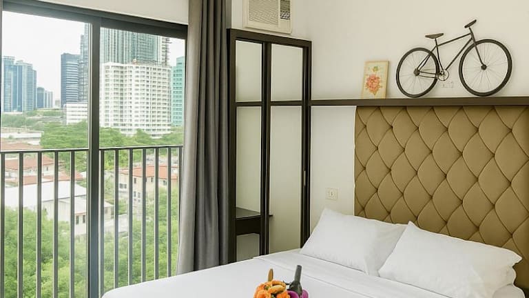 LOT 8 CONDOMINIUM 1BEDROOM MABOLO CEBU bietet ein Wohnzimmer mit TV und Zugang zu einer Terrasse mit Stadtblick. Die gesamte Unterkunft ist mit Klimaanlage ausgestattet und bietet kostenfreies WLAN sowie Privatparkplätze.