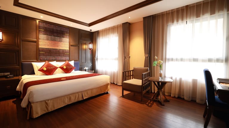 Das Lotus Aroma Sapa Hotel in Sa Pa bietet seinen Gästen eine komfortable Unterkunft mit einem Fitnesscenter, kostenfreien Privatparkplätzen und einem schönen Garten. Die Zimmer sind gut ausgestattet und bieten einen herrlichen Blick auf die Stadt. Genießen Sie ein köstliches Frühstück im Restaurant und entspannen Sie sich bei einem Getränk an der Bar. Das freundliche Personal steht Ihnen rund um die Uhr zur Verfügung und hilft Ihnen gerne bei allen Anliegen. Erkunden Sie die Umgebung mit dem Fahrrad oder mieten Sie ein Auto und spielen Sie eine Partie Tischtennis im Hotel.