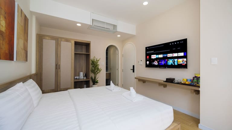 Die Zimmer sind mit einem Flachbild-TV, Klimaanlage und einem Wasserkocher ausgestattet. Jedes Zimmer verfügt über ein eigenes Badezimmer mit einem Bidet und kostenlosen Pflegeprodukten. Einige Zimmer bieten zusätzlich einen Balkon. Bettwäsche und Handtücher werden bereitgestellt.