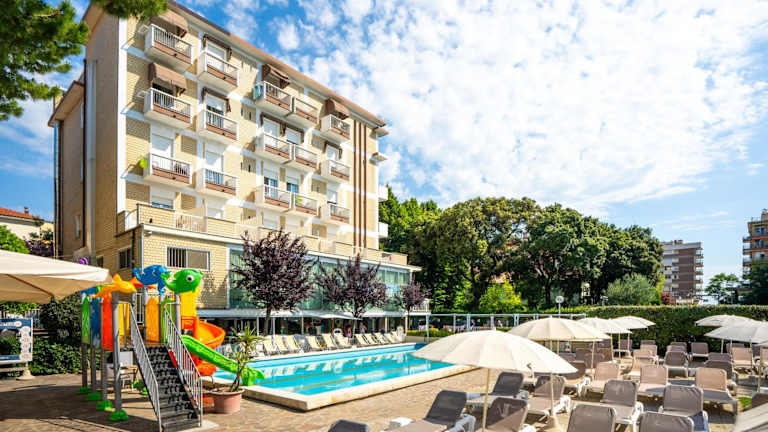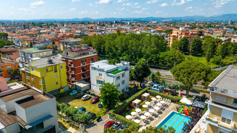 Das Lotus Hotel liegt nur 5 Gehminuten vom Meer entfernt in Rimini. In der Umgebung finden Sie verschiedene Restaurants, Bars und Geschäfte. Eine Bushaltestelle mit Verbindungen ins Zentrum befindet sich nur 200 m vom Hotel entfernt. Der Vergnügungspark Fiabilandia ist 3 km entfernt und bietet Spaß für die ganze Familie.
