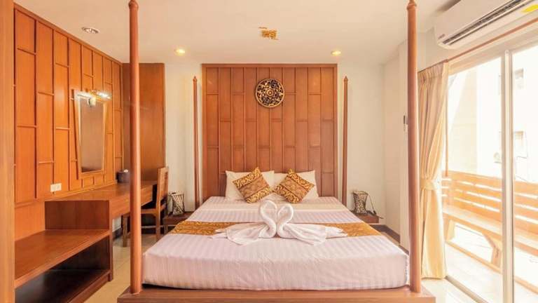 Die 20 Zimmer im Lotus Hotel Patong sind komfortabel eingerichtet und verfügen über Annehmlichkeiten wie Klimaanlage, Flachbild-Kabel-TV, Wasserkocher, Kühlschrank, Safe und Schreibtisch. Die Badezimmer sind mit Duschen ausgestattet und einige Zimmer verfügen über einen Balkon.