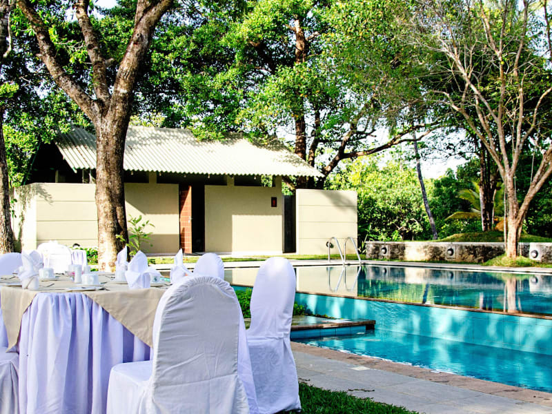 Das Resort verfügt über ein hauseigenes Restaurant, in dem Sie frische sri-lankische Gerichte und andere westliche Köstlichkeiten genießen können. Alternativ können Sie den Zimmerservice nutzen, um Ihre Mahlzeiten bequem auf Ihrem Zimmer zu genießen.