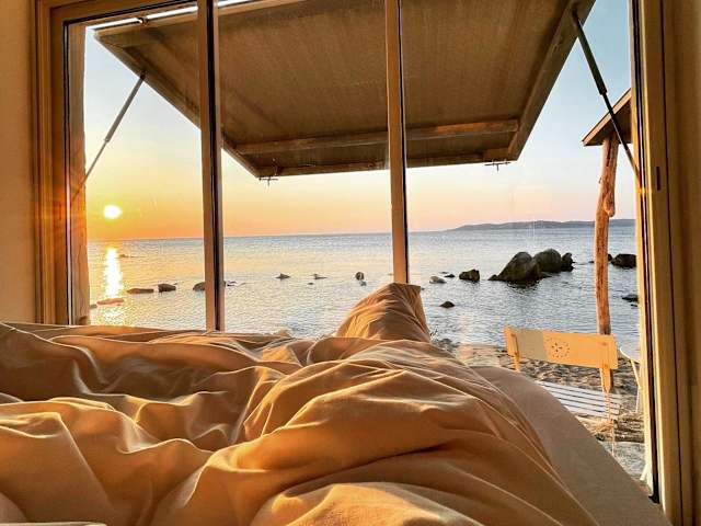 Lou cabanou bietet Übernachtungsmöglichkeiten mit einer Terrasse oder einem Balkon. Die Unterkunft verfügt über einen Garten und einen eigenen Strandbereich.