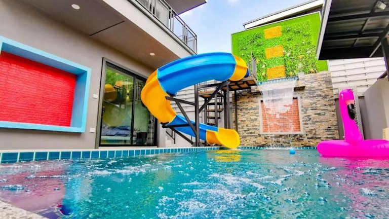 Die Lounge in der Loft Huahin Pool Villa bietet eine Terrasse, auf der Sie sich entspannen und die Sonne genießen können. In der Nähe gibt es auch zahlreiche Aktivitäten und Sehenswürdigkeiten, die Sie erkunden können, darunter Strände, Golfplätze und historische Stätten. Hua Hin, eine beliebte Touristenstadt, ist nur 12 km entfernt und bietet eine Vielzahl von Freizeitmöglichkeiten.
