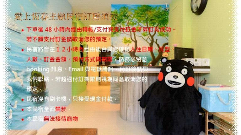 Das Love in Hengchun B&B bietet eine komfortable Unterkunft in der Nähe der Altstadt von Hengchun. Mit kostenfreiem WLAN in allen Bereichen und einer Vielzahl von Zimmern mit einzigartigen Wandmalereien ist dies der perfekte Ort, um sich zu entspannen und die Umgebung zu erkunden. Das freundliche Personal steht Ihnen zur Verfügung, um Informationen über Ausflüge und Aktivitäten in der Umgebung bereitzustellen, und ein köstliches Frühstück wird täglich serviert.