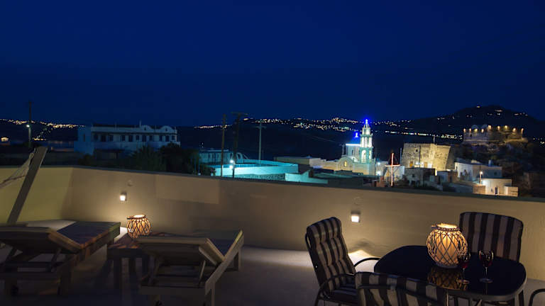 Die Unterkunft befindet sich in Akrotiri auf Santorini, etwa 1 km vom Strand Caldera entfernt. In der näheren Umgebung befinden sich Attraktionen wie die archäologische Stätte Akrotiri, die 1,6 km entfernt liegt, und der Hafen von Santorin, welcher sich 9,2 km von der Unterkunft befindet. Der nächste Flughafen ist der Flughafen Santorin, der sich in 12 km Entfernung befindet.