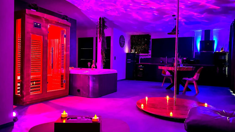 Die love room Villa Des Charmes bietet Garten- und Grillmöglichkeiten und ist eine klimatisierte Unterkunft mit einem privaten Parkplatz und kostenlosem WLAN. Die Rezeption ist rund um die Uhr besetzt, und die Mitarbeitenden sprechen Englisch, Spanisch und Französisch. Die Unterkunft hat spezielle Richtlinien für Feiern und für den Check-in.
