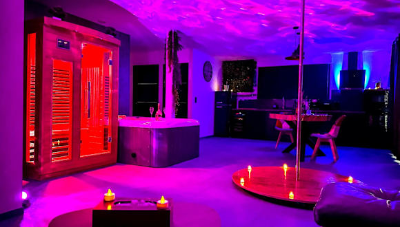 Die love room Villa Des Charmes bietet Garten- und Grillmöglichkeiten und ist eine klimatisierte Unterkunft mit einem privaten Parkplatz und kostenlosem WLAN. Die Rezeption ist rund um die Uhr besetzt, und die Mitarbeitenden sprechen Englisch, Spanisch und Französisch. Die Unterkunft hat spezielle Richtlinien für Feiern und für den Check-in.
