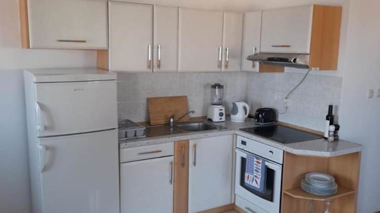 Das klimatisierte Apartment verfügt über 2 Schlafzimmer, einen Flachbild-TV, einen Essbereich und eine voll ausgestattete Küche mit Kühlschrank und Backofen. Handtücher und Bettwäsche werden gestellt, so dass Sie sich um nichts kümmern müssen. Ein Highlight der Unterkunft ist die Terrasse, auf der Sie die frische Meeresluft genießen können.