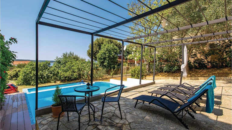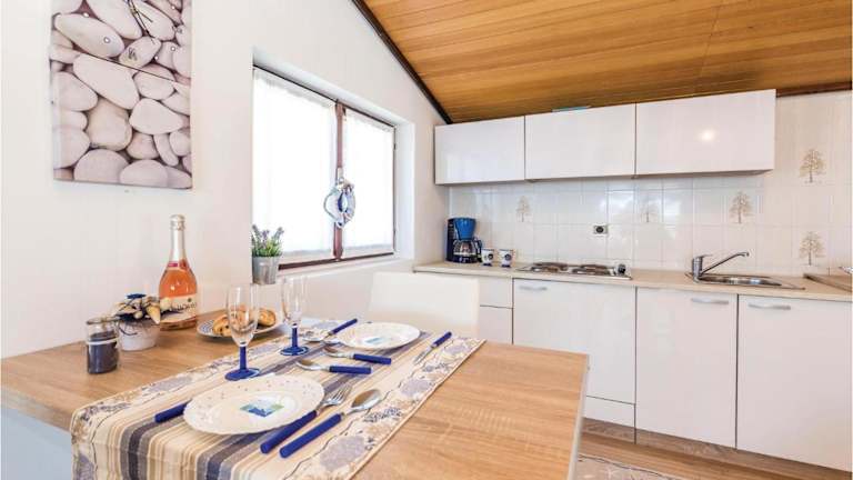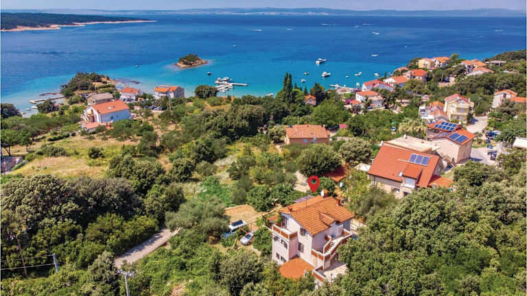 Die Unterkunft befindet sich in Supetarska Draga, in der Region Rab, direkt am Strand mit Blick auf das Meer. Der Strand Dumići ist in der Nähe, etwa 900 m bzw. 1 km entfernt, und der Flughafen Rijeka liegt in einer Entfernung von 62 km und 66 km.