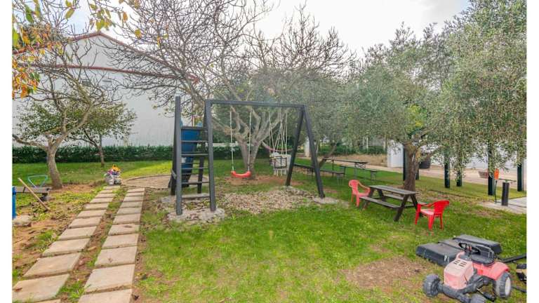 Die Ferienwohnung bietet Platz in einem Schlafzimmer und ist mit Kabel-TV ausgestattet. Zu den weiteren Annehmlichkeiten gehören Heizung, WLAN und Outdoor-Spielgeräte für Kinder. Die Gäste können Gartenmöbel und eine Feuerstelle im Freien nutzen.