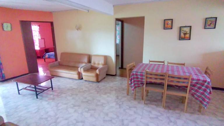 Die Ferienwohnung verfügt über 3 Schlafzimmer und bietet Platz für Sitzgelegenheiten. Zur Ausstattung gehören ein TV sowie eine Küche, die mit einem Kühlschrank ausgestattet ist.