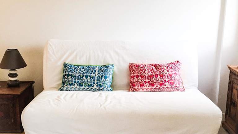 Die Ferienwohnung verfügt über ein Schlafzimmer, ein Wohnzimmer und eine voll ausgestattete Küche mit Kühlschrank und Kaffeemaschine. Zum Bad gehören ein Bidet und eine Dusche. Handtücher und Bettwäsche werden bereitgestellt.
