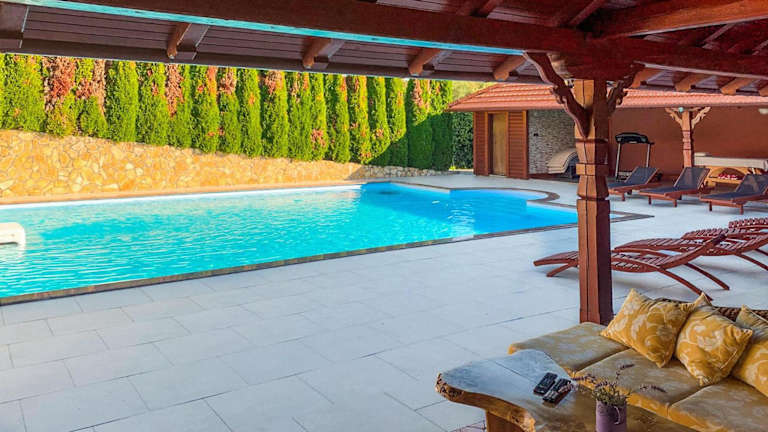 Lovely Home In Gornja Kovacica bietet Übernachtungsmöglichkeiten in einem Ferienhaus mit eigenem Pool und Balkon.
