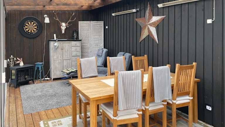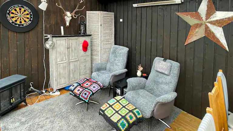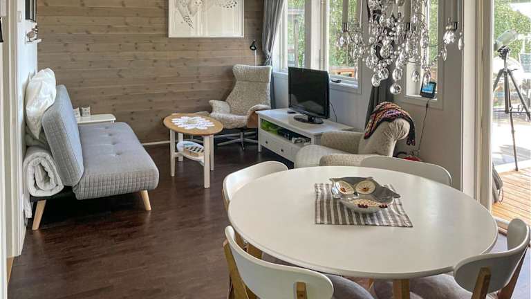 Das Ferienhaus bietet Platz in zwei Schlafzimmern und ist mit einem TV ausgestattet. Die Einrichtung sorgt für einen komfortablen Aufenthalt.